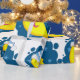 A happy yellow moon face wearing a blue and white hat. This design looks really effective on these Wrapping Paper