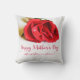 A pillow which says Happy Mother's Day with a single red rose. Classic and elegant. Customisable text says: Best Mum Ever!
