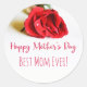Happy Mother's Day Best Mum with a Single Red Rose Classic Round Sticker