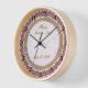 A Digitalbcon Images Design featuring a Pink Sapphire and Gold trim colour theme with a variety of custom images, shapes, patterns and styles in this one-of-a-kind "Happy Mother's Day" Clock. This elegant and attractive design comes complete with customisable text lettering to suit your own special occasion. Say "Happy Mother's Day" this year with this beautifully designed clock.