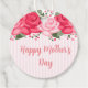 This round happy Mother's Day gift tag is shown with a lovely pink floral print.