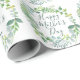 This Mother's Day wrapping paper features a modern design with watercolor greenery foliage wreath and script text.