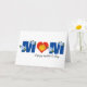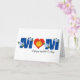 Here is a design made with type. Starting and ending with the 'M', a big bold type font is used, along with delicate blue flowers. In the centre, the 'O' is a red heart that has a yellow mother duck and her baby. The text on the front can be customised. Inside, you can add your own text.