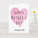 A pretty happy mother's day card for mummy featuring a pink watercolor heart on the front. You'll be able to easily personalise the front with the child's name along with mummy, mum, etc. Inside reads a sweet message for mum, which you can can also personalise. The back features the same pretty pink heart along with the year, which you can also personalise if wanted. This makes a great Mother's Day keepsake.