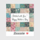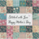 This vibrant design showcases a charming quilt pattern design, perfect for celebrating Mother's Day. The patchwork is composed of a variety of colorful floral fabrics, creating a cheerful and heartwarming esthetic. In the center, a handwritten message reads "Stitched with Love - Happy Mother's Day," adding a personal touch to the design. This image evokes feelings of warmth, love, and appreciation.