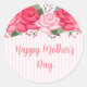 Round happy Mother's Day sticker shown with a pretty pink floral print.