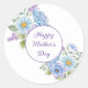 Large round happy Mother's Day sticker is shown with a lovely blue and purple floral print.
