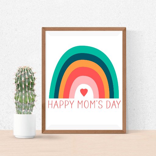 Modern Colourful Rainbow with a heart and Happy Mum's Day below. Makes a great Mother's day gift.
