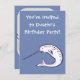 These easy to customise birthday party invitations are perfect for kids who love narwhals or sea creatures in general. The denim blue invites have an illustration of a narwhal on the front with text to fill-in about your special event. There's another narwhal on the back with spots to fill in the date, time and location of your special event. These flat panel invitations coordinate with other items in our Happy Narwhal collection.