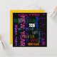 Designed for 8 letters : NEW YEAR (7 + space) with year+ happy. Design on square flat card invitation with black background (in front) and yellow background in back. You can easily change background colour and text (colour, font, size and position) by clicking the personalise or customise button. Matching greeting card, paper napkin, paper plate, gift bag and more... Joy and unconventional greeting for Happy New Year 2019.