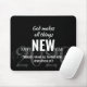 Stylish black MOUSE PAD for the New Year 2020 with the message GOD MAKES ALL THINGS NEW with HAPPY NEW YEAR in white typography. The 2020 is written in dark grey script, with the customisable Bible verse from Revelation. This is an ideal New Year giveaway for work colleagues (or employees), men's groups, etc. and is part of the NEW YEAR Collection by Berean Designs.