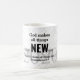 Stylish teal COFFEE MUG for the New Year 2020 with the message GOD MAKES ALL THINGS NEW with HAPPY NEW YEAR in BLACK typography. The 2020 is written in lighter silver grey script, with the CUSTOMIZABLE Bible verse from Revelation, which you can personalise with your own custom text, name of church/organisation, or your name. There is optional text which you can delete as required. This is an ideal New Year giveaway for work colleagues (or employees), church groups, etc. and with customisation can be suitable for any vision-themed event. Matching items are available in the NEW YEAR Collection by Berean Designs.