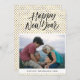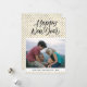 Celebrate the New Year with this simple, chic, elegant and modern New Year photo card featuring the word " HAPPY New Year 2021" and your custom greeting message & your family name in modern typography in front. Reverse to reveal a beautiful the full white gold dot pattern background.