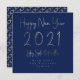 Happy New Year 2021 Elegant Silver Script Blue Holiday Card