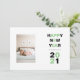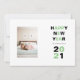 Happy New Year 2021 minimalist sage green and black typography photo card. The back includes a sage green and black diagonal striped pattern. Photography © Storytree Studios, Stanford, CA