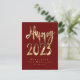 Happy New Year 2023 Elegant Red and Gold Script Holiday Postcard