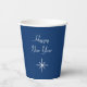 Happy New Year blue and white paper cup, with a snowflake design and customisable typography lettering. A simple yet festive addition to your New Year's party or winter celebration.