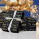 Modern and elegant Gold Black Happy New Year 2025 Elegant Sparkles Wrapping Paper with white sparkles on a black background and in a trendy script. Simple gift wrap for wishing your friends and family happy New year.