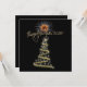An elegant gold star on top of a Christmas tree with fireworks wishes you a Happy New Year
