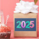 Happy New Year 2025, concept image with colourful glass numbers on shiny blue background