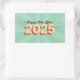 Happy new year 2025 star groovy retro text rectangular sticker