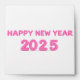 Happy New Year 2025 card, with transparent background. The stylish font is in attractive pink colour with baloon like 3d design.