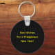 This beautiful keychain tells everyone to have a Happy New Year in fancy calligraphy script and customizable greeting or business information on the back.