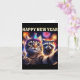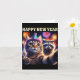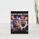 Happy New Year 2026 Cute Cat Racoon Celebration Card