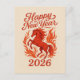 Happy New Year 2026 Fiery Horse Holiday Postcard