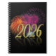 This stylish New Year design features bold golden 2026 numbers set against a vibrant backdrop of colorful fireworks. The dark background adds a dramatic contrast, making the gold typography shine with a luxurious and festive feel.