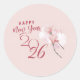 Happy New Year 2026 Floral Pink Round Sticker