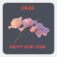 Happy New Year 2026 Pink Lotus Flower Illustration Square Sticker