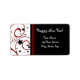 Happy New Year address labels in classic red, black and white with elegant swirls and stars pattern, the perfect addition to your New Year's cards and envelopes.