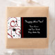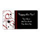 Happy New Year address labels in classic red, black and white with elegant swirls and stars pattern, the perfect addition to your New Year's cards and envelopes.