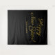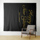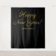 Celebrate in timeless style with our elegant gold script Happy New Year backdrop tapestry. Personalise it with your company name, family name, or event details for a custom touch guests will remember. Designed on a sleek black background for a bold, minimalist look that works year after year. Perfect as a photo booth backdrop, party entrance décor, dance floor wall, or behind-the-bar accent — order now and make your countdown picture-perfect!