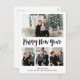 Happy New Year | Black and White Multi Photo Grid Holiday Postcard