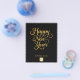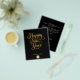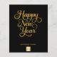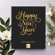 Elegant Custom New Year flyer for Businesses. Black background, golden text on the front. White text on the back.