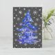 we wish you a happy new year with snowflakes white pattern and a blue watercolor christmas tree