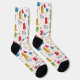 Step into the New Year with these festive and fun crew socks! Featuring an adorable all-over pattern of colorful cats wearing party hats and bow ties, scattered with celebratory elements like clocks, fireworks, and confetti, all against a clean white background. The text "Happy New Year" in glittering gold script adds the perfect holiday touch. These socks are a whimsical accessory for cat lovers to wear to any New Year's Eve party or just for cozying up at home. They make a purr-fectly unique gift for the holiday season.