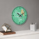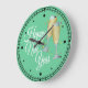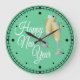 This New Year's clock features two glasses of champagne, colourful confetti and the text: Happy New Year all on a green background. The background colour can be changed by choosing the customise it button and then edit.