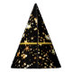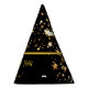 Cute black with gold stars and text party hat for New Year's Eve celebration matching many items in this collection. Easily change text using the Template provided. Dimensions: 6"h (assembled), paper hats have an attached elastic string to keep them securely in place, minimum order of 12. Made in the USA. See "About This Product" at side for more information.