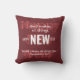 This is a stylish THROW PILLOW with the inspirational message GOD MAKES ALL THINGS NEW combined with HAPPY NEW YEAR in white typography against a merlot burgundy background. The greeting HAPPY NEW YEAR is written in a cranberry-coloured script. The placeholder Scripture verse is customisable, so you can change for your own favourite Bible verse, your name or other text. Available in other colours in the NEW YEAR Collection.
