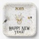Happy New Year Clock Gold and Black Paper Plate