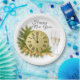 An Elegant Happy New Year Round Paper Plate With Clock And Champagne Glasses