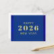 Happy New Year holiday postcard featuring blue colours with gold text. Great for those looking for holiday postcards to celebrate the new year. Nice blue colours. Custom text on the front and back of the card. Use the template to create your own custom Happy New Year holiday postcard.