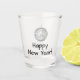 A shot glass featuring a silver disco ball and the words Happy New Year! Perfect for your New Years Eve celebrations.