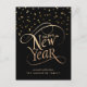 Happy New Year Elegant Script Black Gold Holiday Postcard