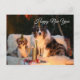 Happy New Year funny dogs with party hat postcard, this design can be personalised with your own text