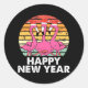 Happy New Year Funny Pink Flamingo Enthusiast Classic Round Sticker