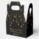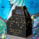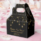 Happy New Year Gold and Black String Lights Favour Box. This design features elegant gold glittering string lights with the words Happy New Year. Personalise this custom design with your family name, year, and custom celebration greeting. Perfect for a New Year's Eve Party!